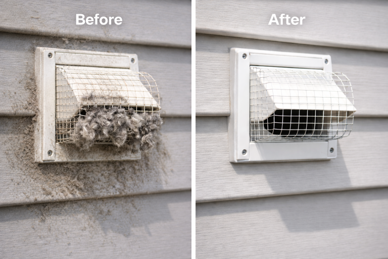 Over time highly flammable lint can accumulate within dryer vents, presenting significant safety risks. Our dryer vent cleaning process begins with a thorough inspection of the entire system. During the dryer vent cleaning process we evaluate the condition of the vent hose attached to the rear of the dryer and, if deemed necessary, will facilitate its replacement. Should we identify any damage or hazardous conditions, we will inform the customer and take appropriate measures to address any potentially combustible materials.